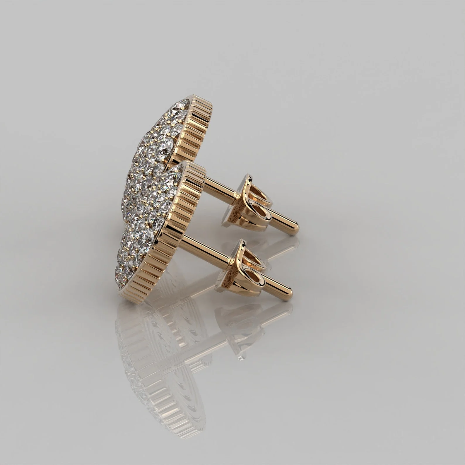 1.00 Karat Yuvarlak Kesim Laboratuvar Pırlantası Pave Dizme Tasarım Küpe / IGI Sertifikalı