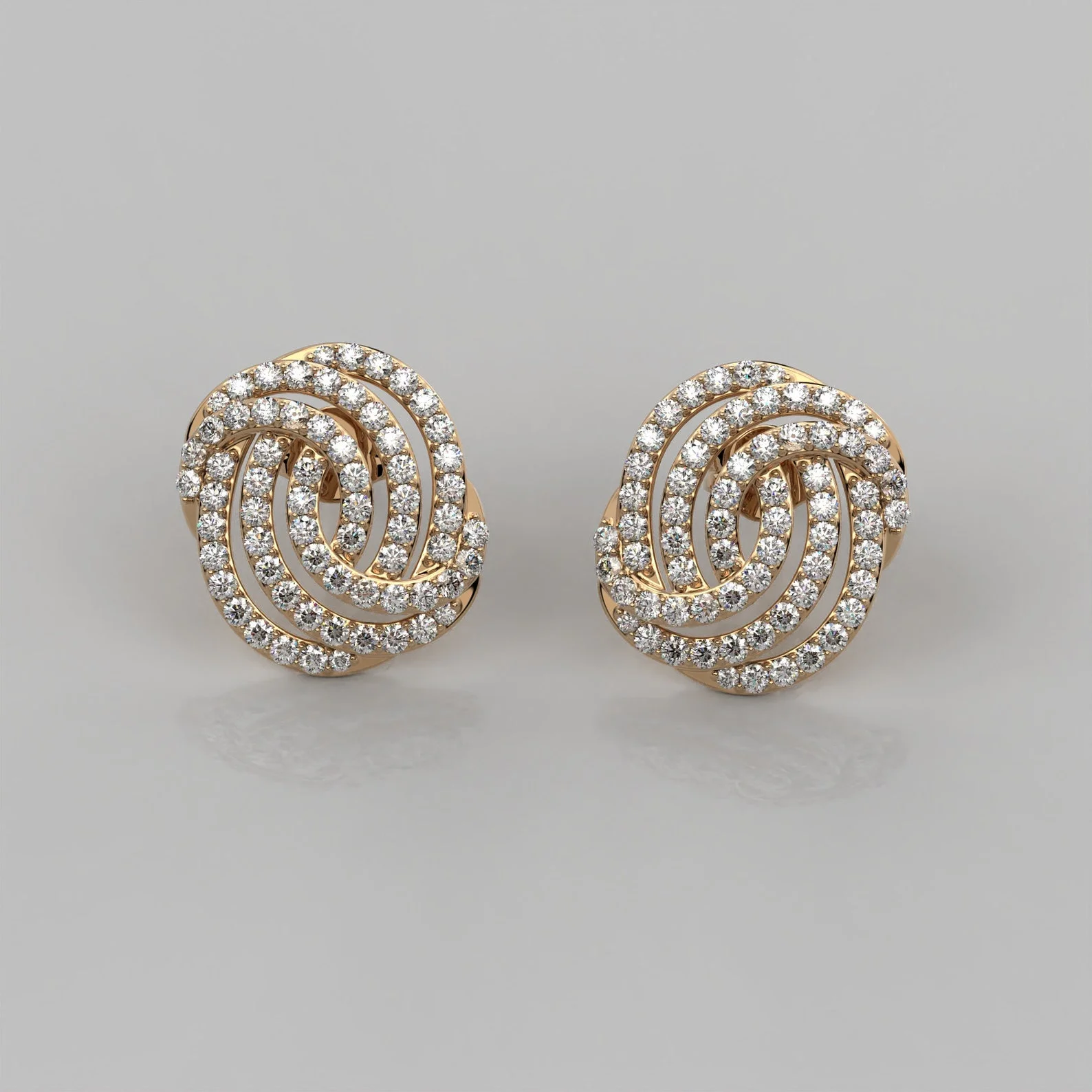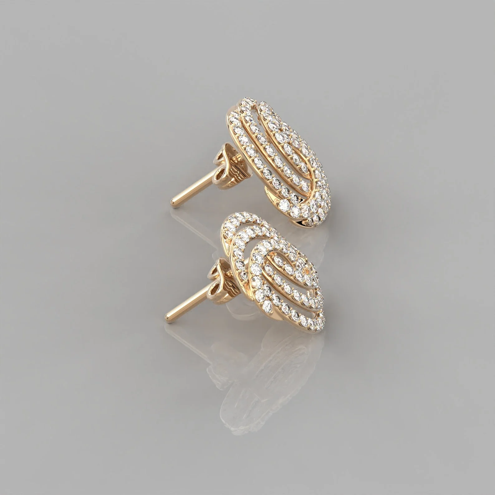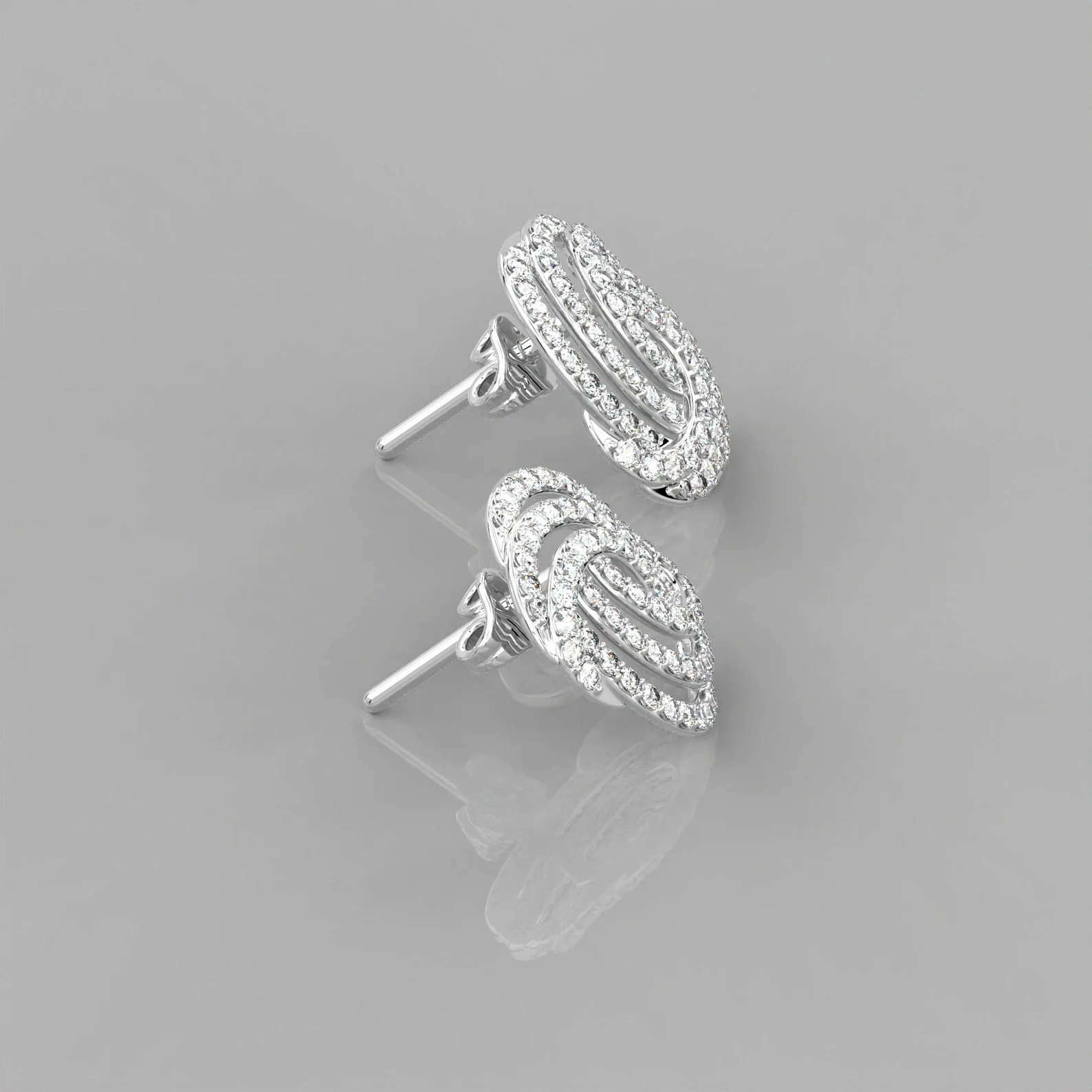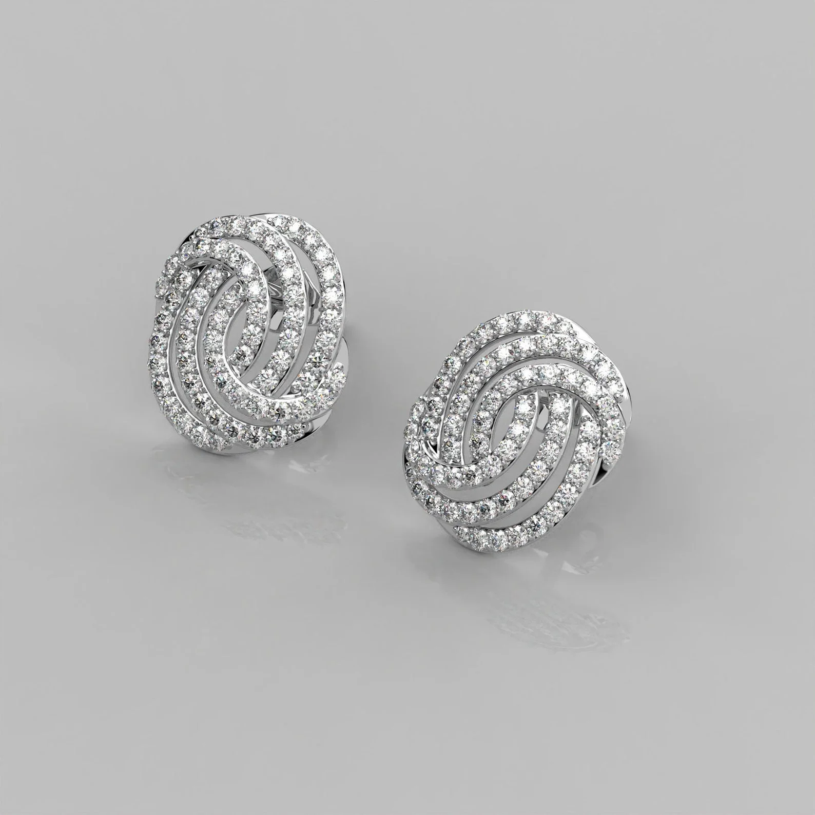 1.00 Karat Yuvarlak Kesim Laboratuvar Pırlantası Pave Dizme Tasarım Küpe / IGI Sertifikalı